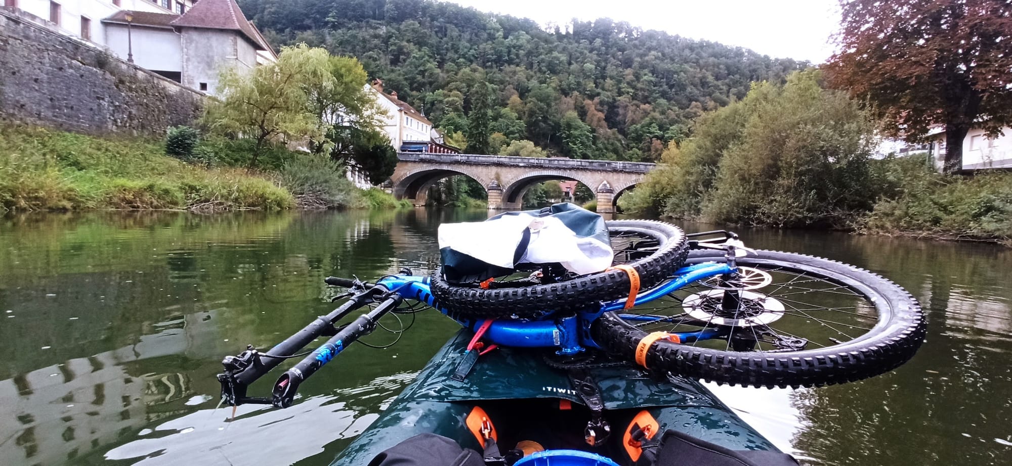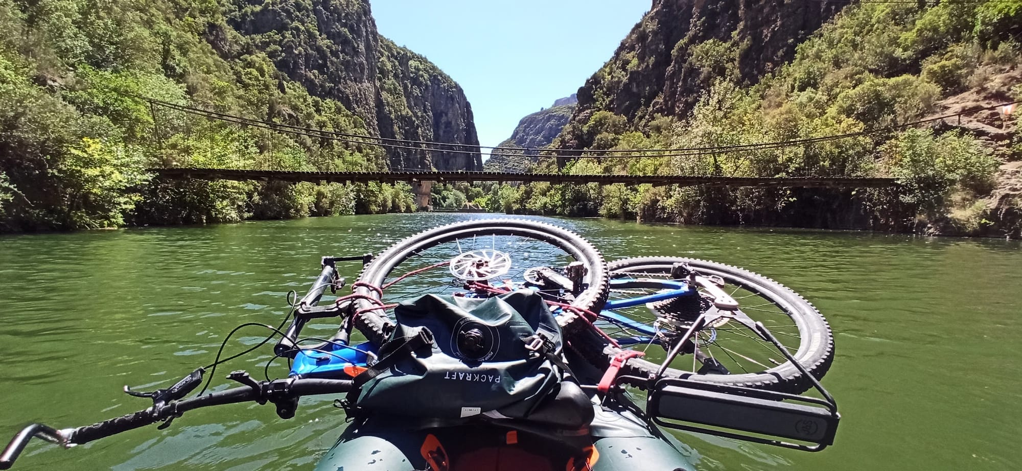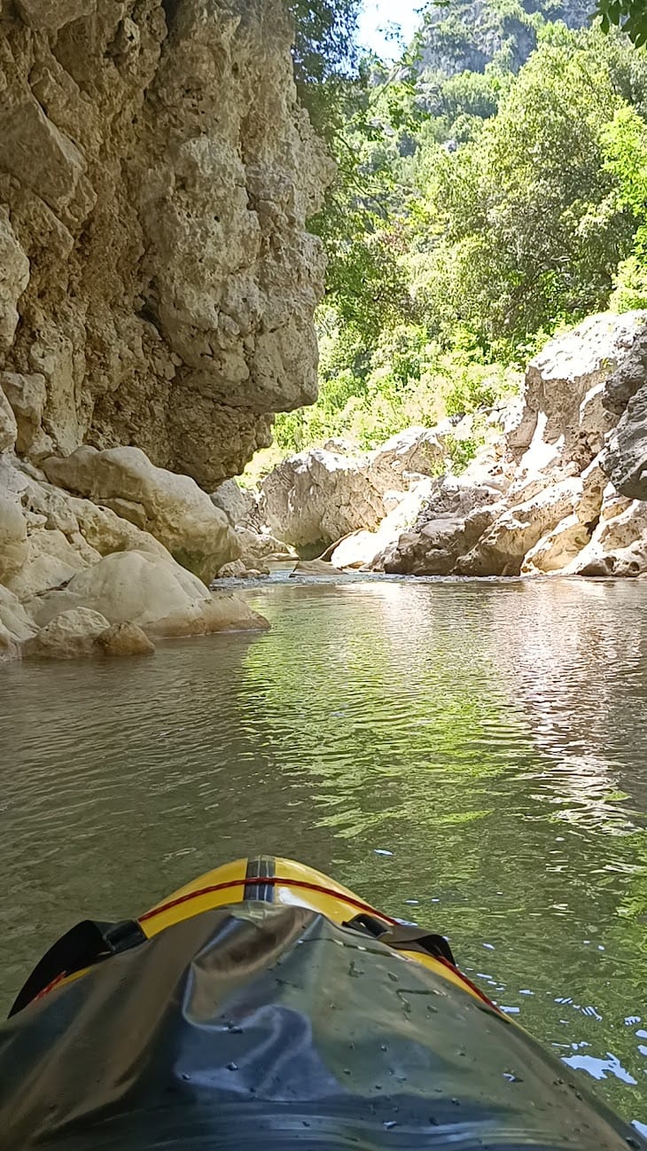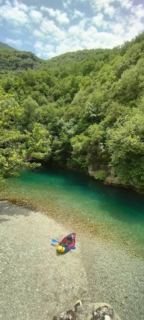 Thyamis (Kalamas) river. Kayak y bicicleta. Vrosína, Epirus (Greece)